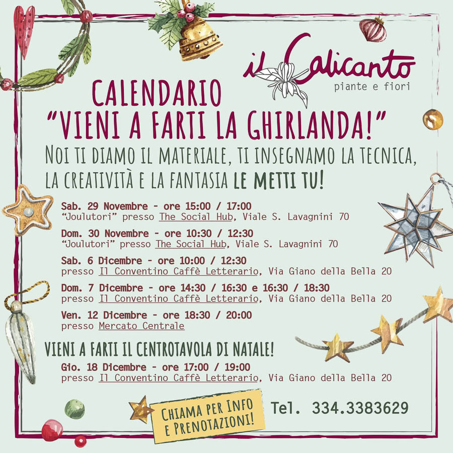 Durante il periodo Natalizio il Calicanto sarà in giro per la città ad organizzare una serie di workshop di decorazioni natalizie. Noi ti diamo il materiale, ti insegniamo la tecnica e la creatività e la fantasia le metti tu! CHiamci per info e prenotazioni al 334.3383629